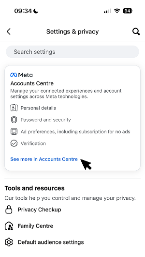 Step 2: Select “see more in account centre”